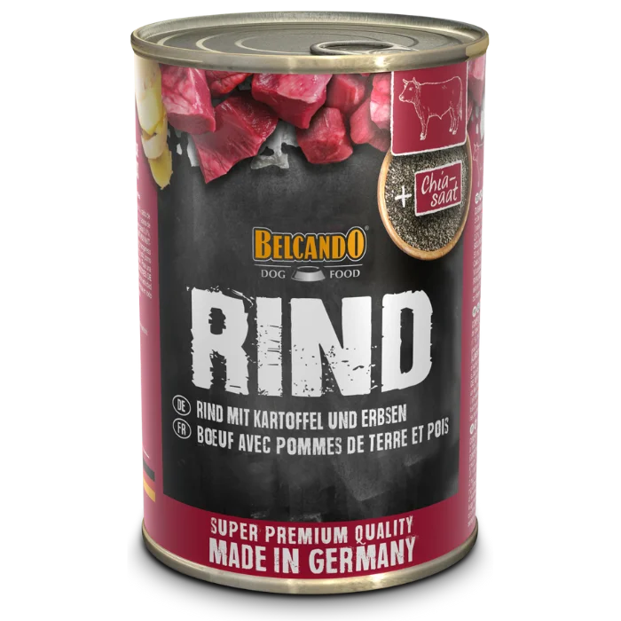 Alimento húmedo super premium para perros adultos, elaborado con ingredientes naturales y piezas enteras de carne de ternera de alta calidad. Contiene patatas y guisantes como fuente de carbohidratos y fibra, acompañado de semillas de chía y aceite de cardo para ácidos grasos esenciales.